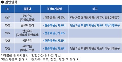 특히 강화유리, 복층유리, 접합유리, 거울 등을 취급하는 가공업체와 유통업체는 라벨, 스탬프, 각인 등 원산지 표시 방식의 적정성을 다시 한 번 점검할 필요가 있다.